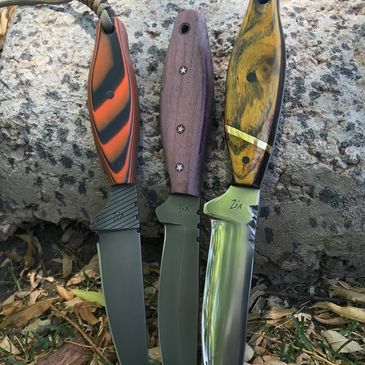 The knives in the Zia Knives store may or may not be available due to the fact we participate in a large number of vendor shows throughout the year. Our goal is to build your custom knife without any additional fees. This gives you the opportunity to design your knife to the exact specifications you are needing.