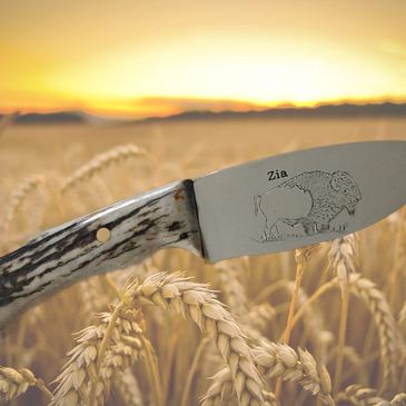 A custom-made sheath is included with each fixed blade knife. To set my knives apart, I also offer hand engraving commonly featuring wildlife, and livestock brand logos.